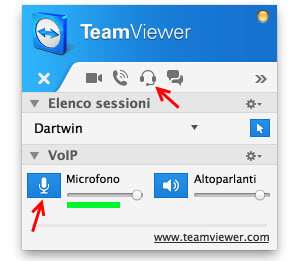 Una volta avviato il collegamento, devi attivare il microfono cliccando sull’icona cuffia (in alto) e poi sul microfono: