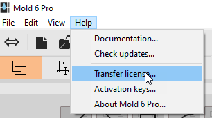 - Now start the program you want to transfer to the computer where it is currently running (computer A). Within the program click on Help / Transfer license ….